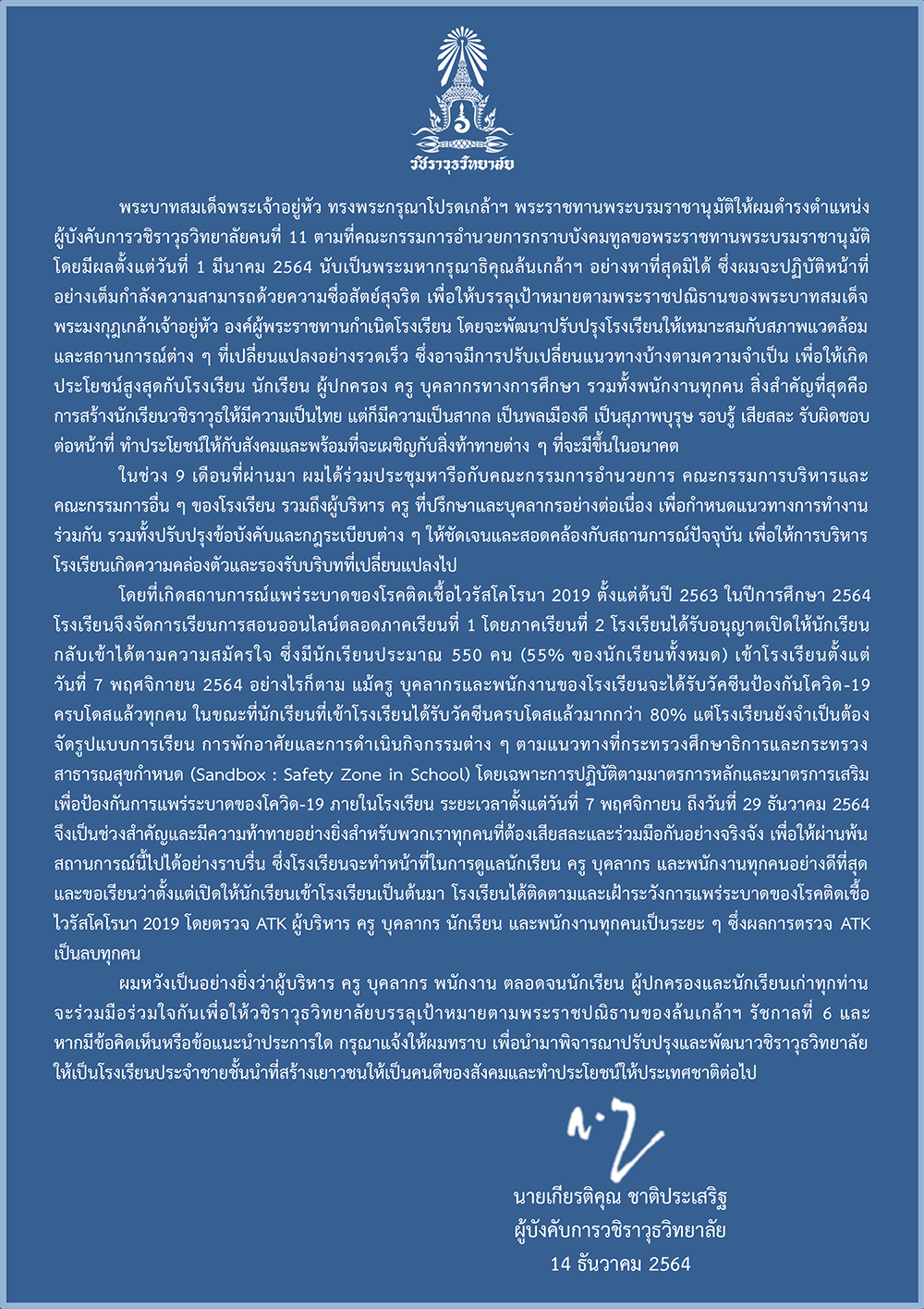 วชิราวุธวิทยาลัย 197 ถนนราชวิถี เขตดุสิต กรุงเทพฯ 10300 โทร. 0-2669-4526-9 โทรสาร. 0-2669-4482