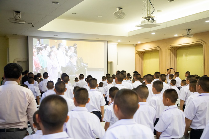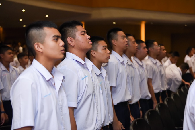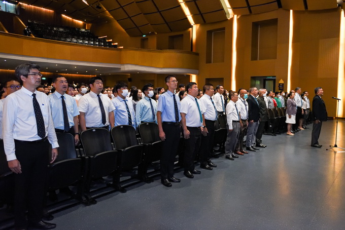 นักเรียนและบุคลากรร่วมกันร้องเพลงสรรเสริญพระบารมีและเพลงสดุดีจอมราชา |