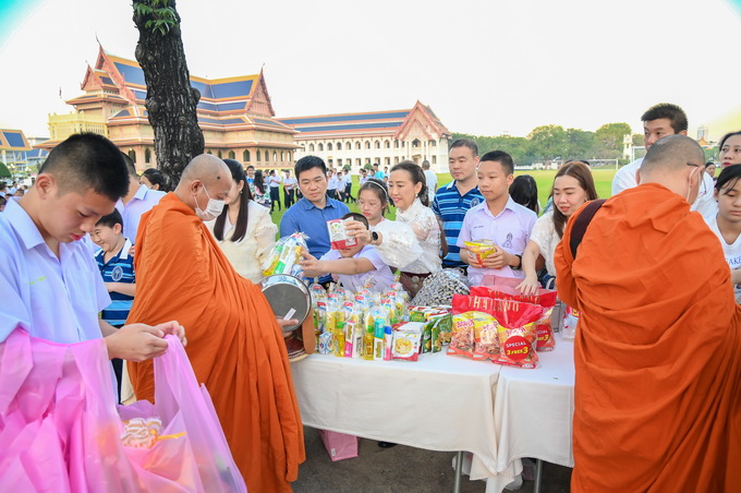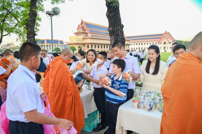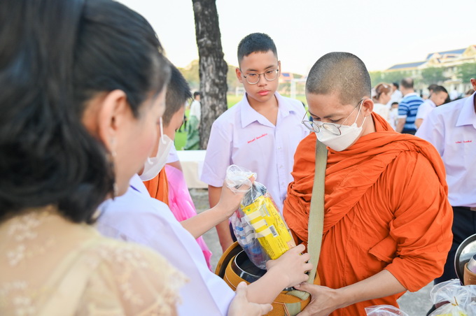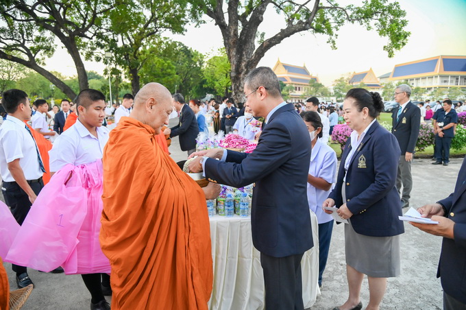 วชิราวุธวิทยาลัยจัดพิธีทำบุญตักบาตรพระสงฆ์ จำนวน