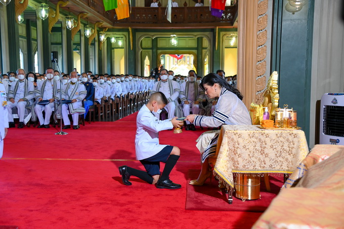 ทรงวางพานพุ่มดอกไม้และทรงจุดธูปเทียนเครื่องทองน้อยถวายราชสักการะ