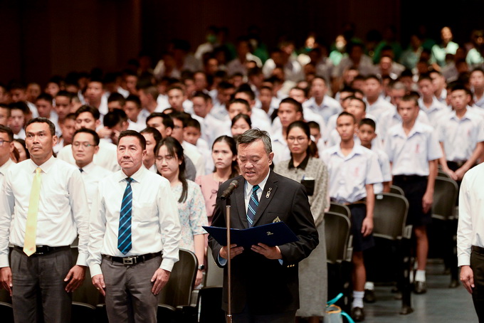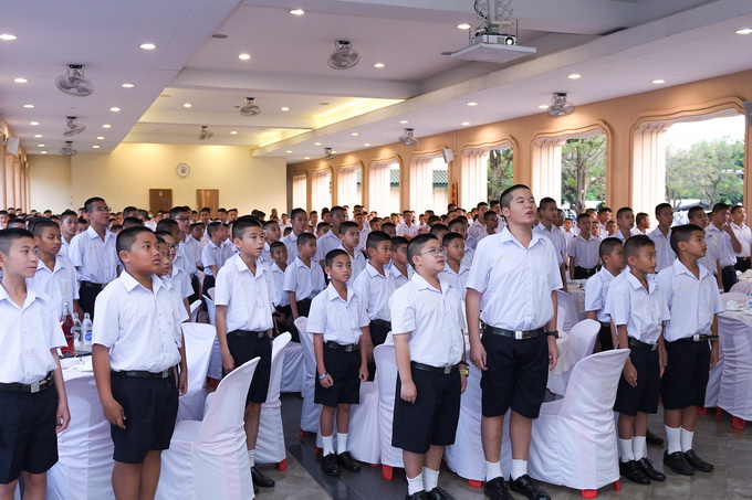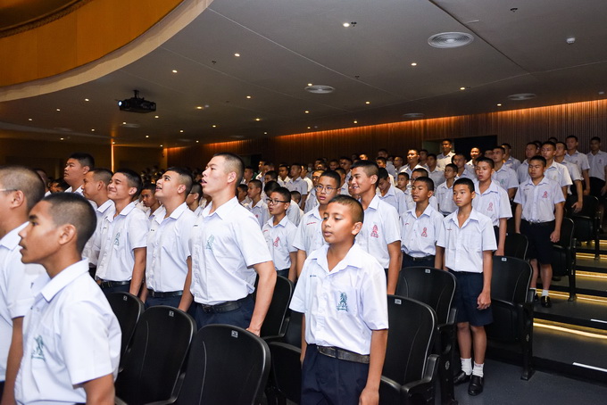 นักเรียนและบุคลากรร่วมกันร้องเพลงสรรเสริญพระบารมีและเพลงสดุดีจอมราชา |