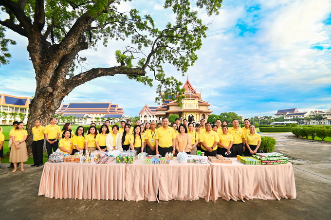 บุคลากร และนักเรียนร่วมทำบุญตักบาตรอาหารแห้ง