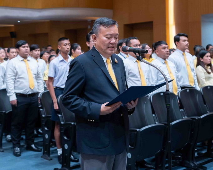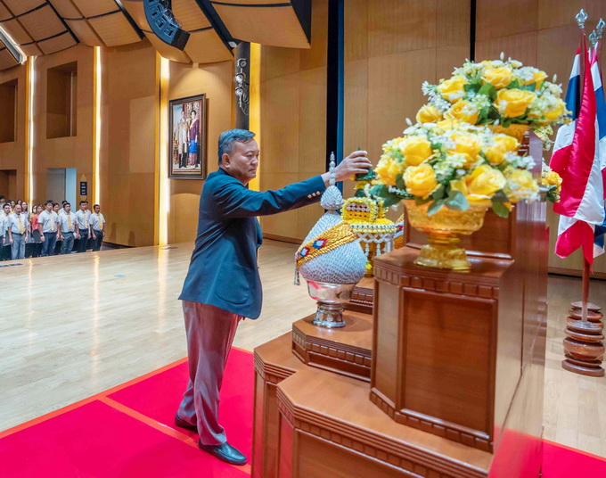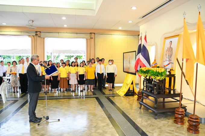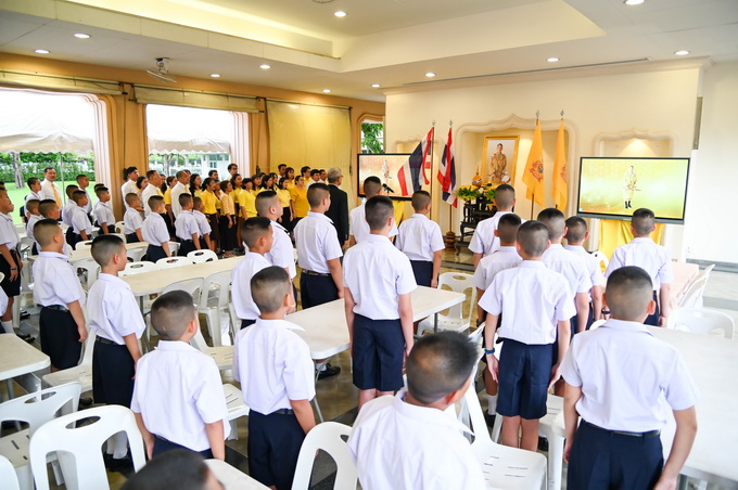 กล่าวสำนึกในพระมหากรุณาธิคุณและนำนักเรียนและบุคลากร