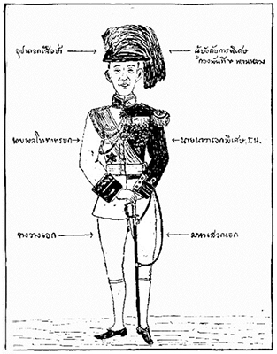 เดิมใช้สะพายเฉียงบ่าขวา ต่อมาใน พ.ศ. ๒๔๖๖