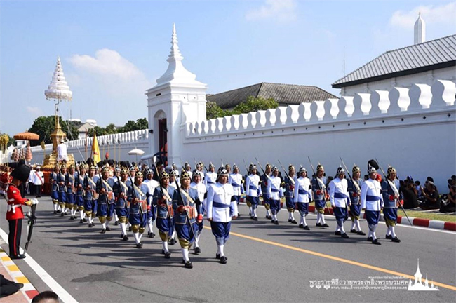 ก็จะใช้ครูและนักเรียนวชิราวุธวิทยาลัยแต่งเครื่องแบบมหาดเล็กหลวงและพระตำรวจหลวงเข้ากระบวนแห่เป็นคราว