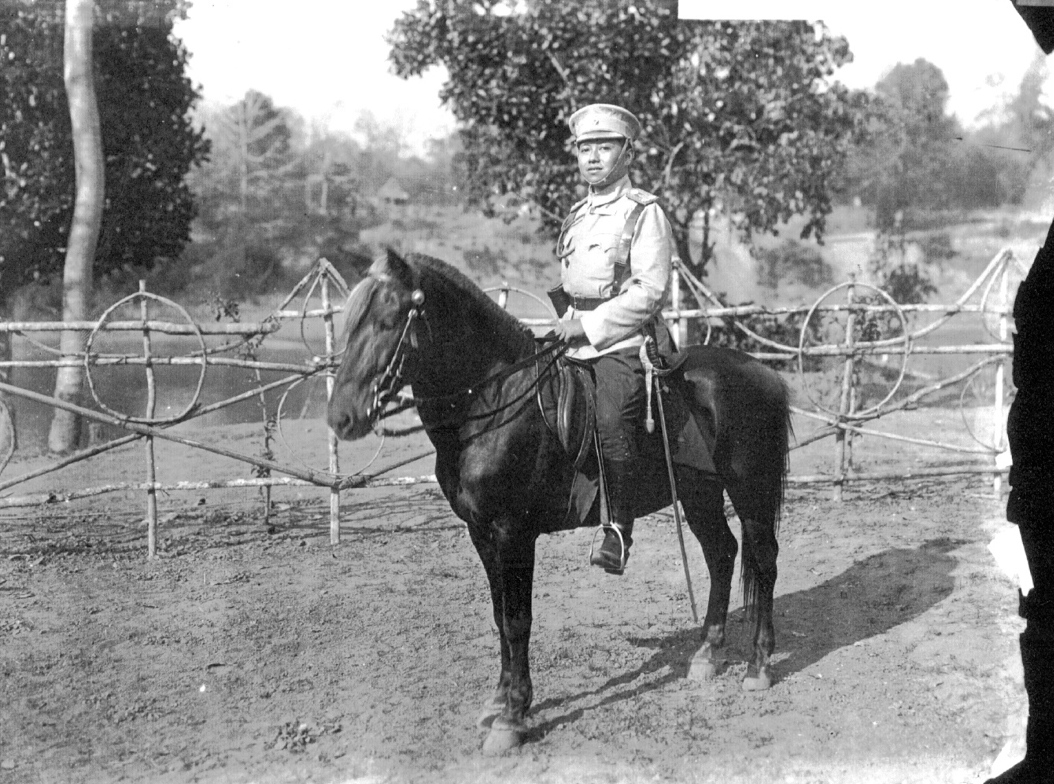 ขณะทรงม้าพระที่นั่งสยามพันธุ์เสด็จตรวจราชการทหารบก