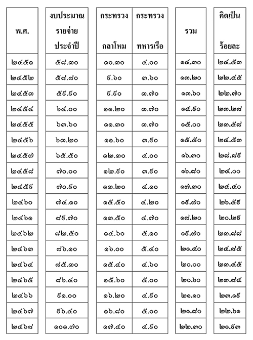 ตารางแสดงงบประมาณรายจ่ายด้านการป้องกันประเทศ