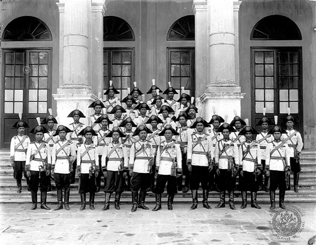 ภาพหมู่นายทหารกรมทหารรักษาวังของพระบาทสมเด็จพระมงกุฏเกล้าเจ้าอยู่หัว |