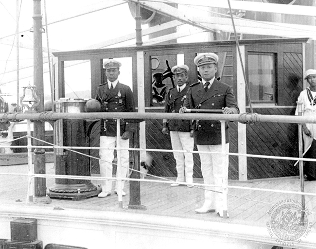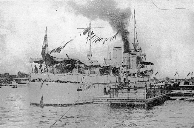 ซึ่งเป็นเรือรบของกระทรวงทหารเรือตามเสด็จไปในกระบวนด้วย