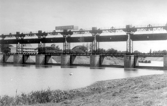 เพื่อทดและส่งน้ำลงสู่ท้องทุ่งด้านตะวันออกของแม่น้ำเจ้าพระยา