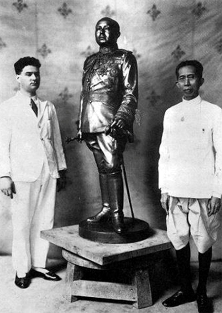 ที่หน้าพระบรมรูปพระบาทสมเด็จพระมงกุฎเกล้าเจ้าอยู่หัวซึ่งต่อมาได้เชิญไปประดิษฐาน
