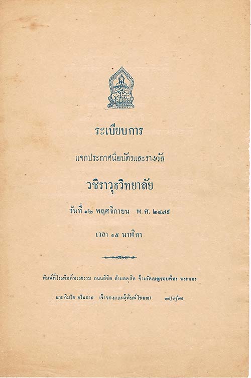 สูจิบัตรงานประจำปีของวชิราวุธวิทยาลัย ๑๒