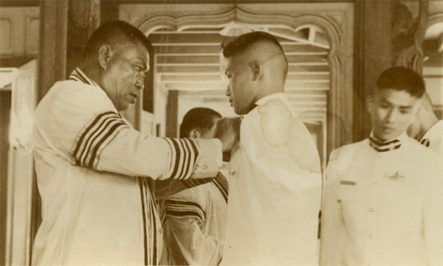 เพื่อท่านกลัดเข็มเครื่องหมายหัวหน้าให้ที่อกเสื้อเบื้องซ้าย
