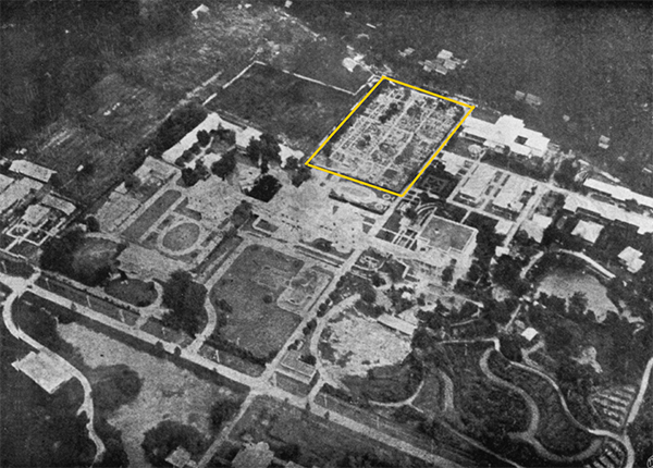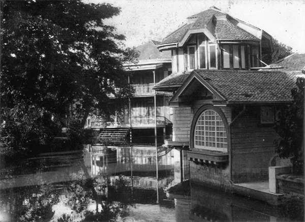 ดุสิตธานีที่ด้านหลังหมู่พระราชมณเฑียรในพระราชวังพญาไท (ในกราบสีเหลือง) |