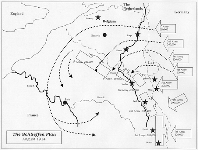 แผนที่แสดงการยกกำลังเข้าโจมตีลิเอซของกองทัพเยอรมัน