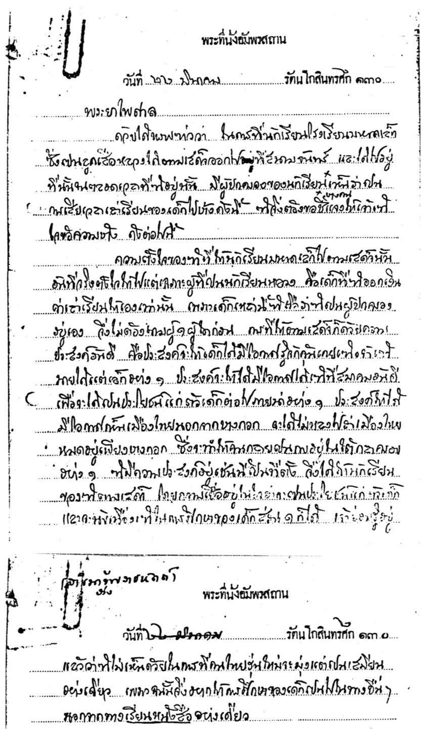 เพราะเด็กเหล่านี้ฃ้าถือว่าฃ้าเปนผู้ปกครองอยู่เอง