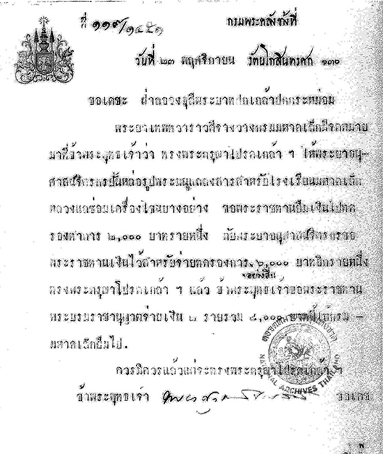 ให้สร้างหอสวดและตึกครูตึกนักเรียนโรงเรียนมหาดเล็กหลวงแล้ว