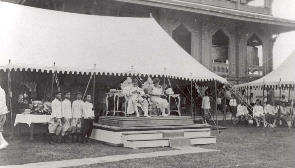 ได้ประชุมเฝ้าทูลละอองธุลีพระบาทอยู่หน้าพระที่นั่ง