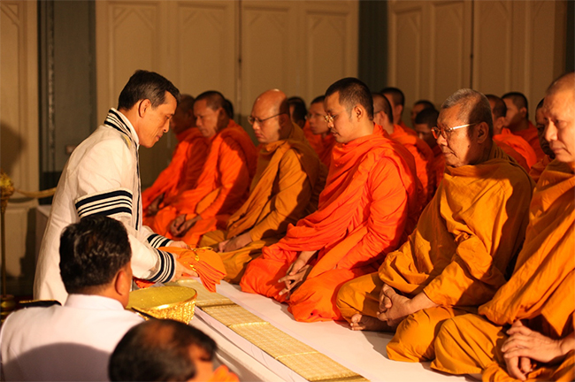 ทรงทอดผ้าสดับปกรณ์ในการทรงบำเพ็ญพระราชกุศลอุทิศถวายพระบาทสมเด็จพระมงกุฎเกล้าเจ้าอยู่หัว