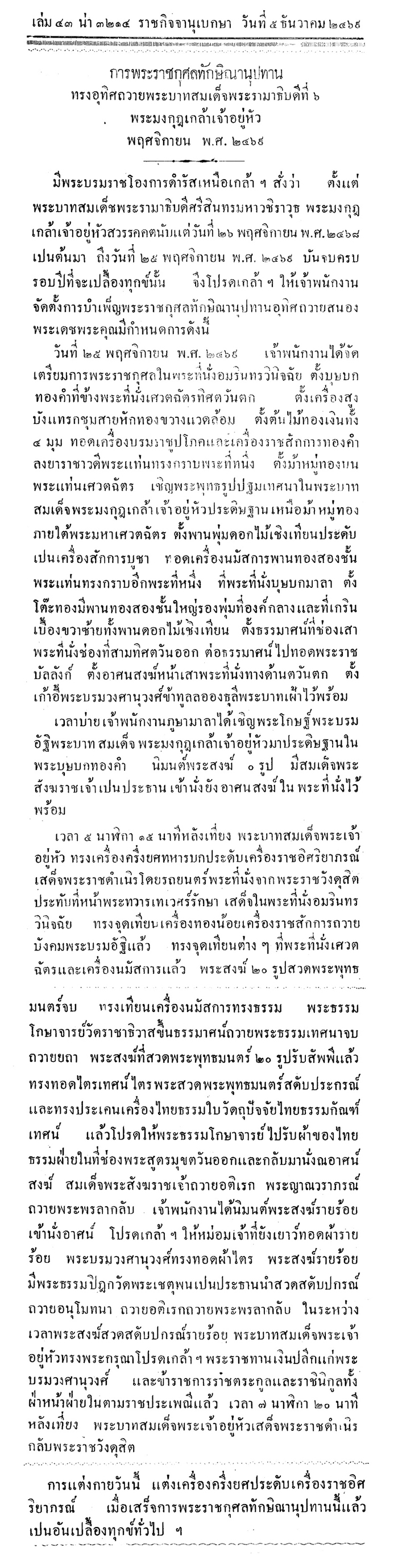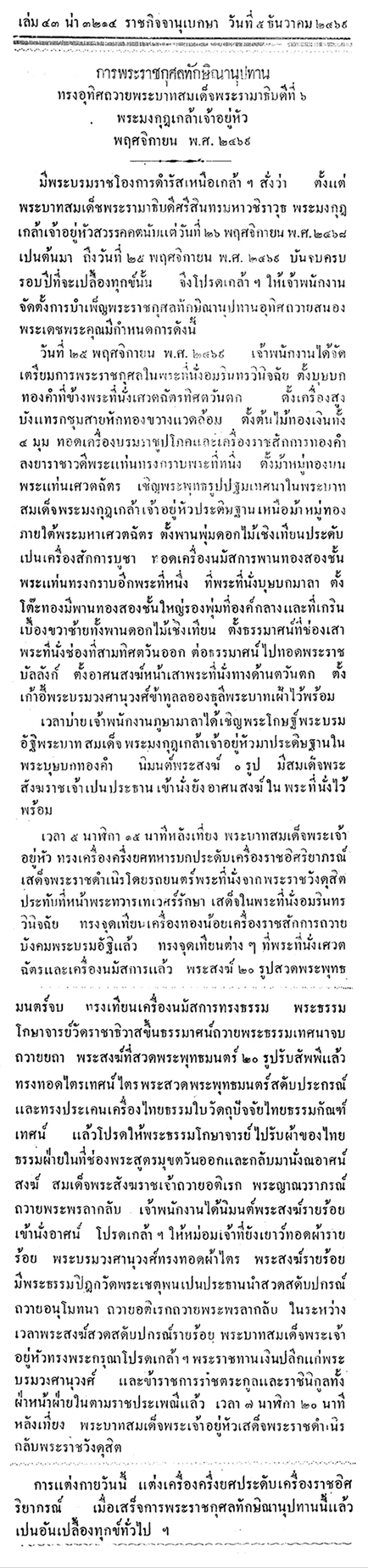 ฉะนั้นในการบำเพ็ญพระราชกุศลอุทิศถวายพระบาทสมเด็จพระมงกุฎเกล้าเจ้าอยู่หัววันที่