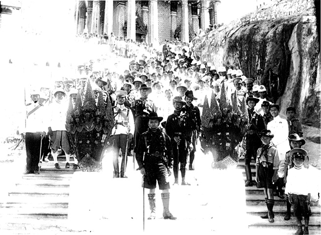 ประทับฉายพระบรมฉายาลักษณ์พร้อมด้วยลูกเสือหลวง