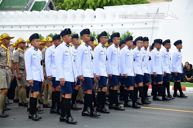 แถวนักเรียนและลูกเสือวชิราวุธวิทยาลัยในงานถวายพระเพลิงพระบรมศพ