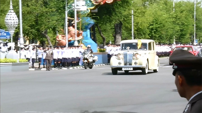 ประทับรถยนต์พระที่นั่งเคลื่อนผ่านแถวคณะครูและนักเรียนวชิราวุธวิทยาลัยนั้น