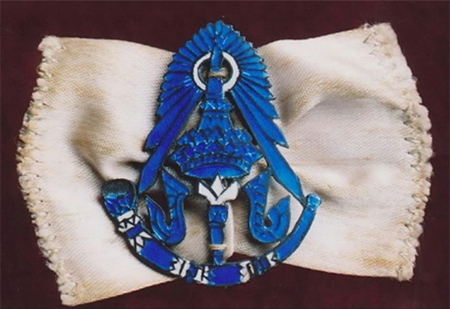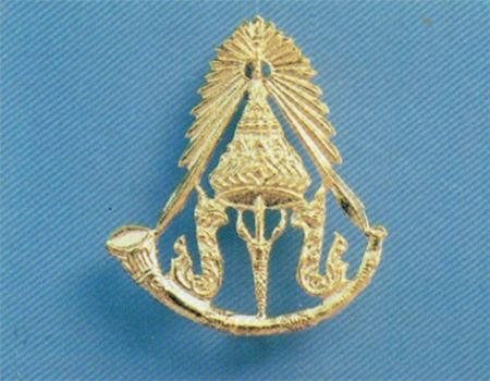 เข็มรูปพระมหามงกุฎแตรงอนนี้พระบาทสมเด็จพระมงกุฎเกล้าเจ้าอยู่หัวทรงดัดแปลงมาจากตราของกรมทหารราบเบาเดอรัม