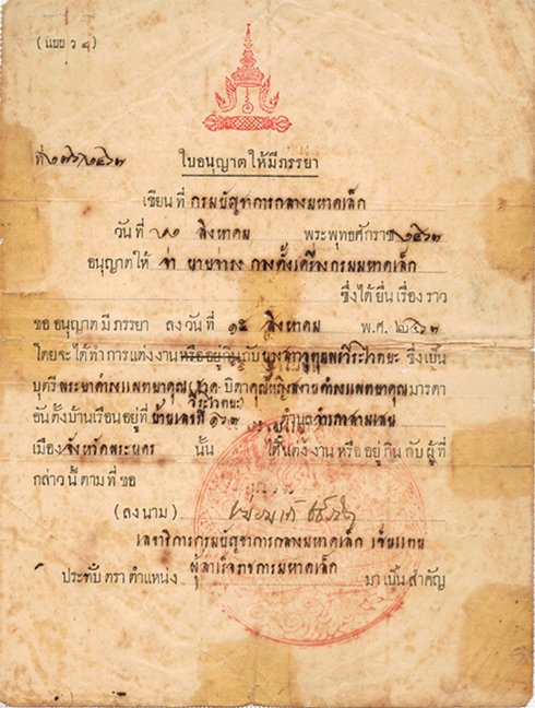 ท่านให้ทำหนังสือขออนุญาตมีภรรยา