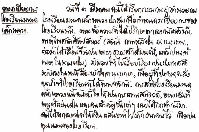แลค่ากินอยู่ในโรงเรียนเดือนละ ๓๐ บาท