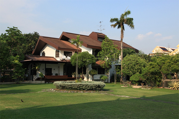 ด้านหลังเรือนที่หันลงไปทางสระน้ำเป็นพื้นที่เปิดโล่ง