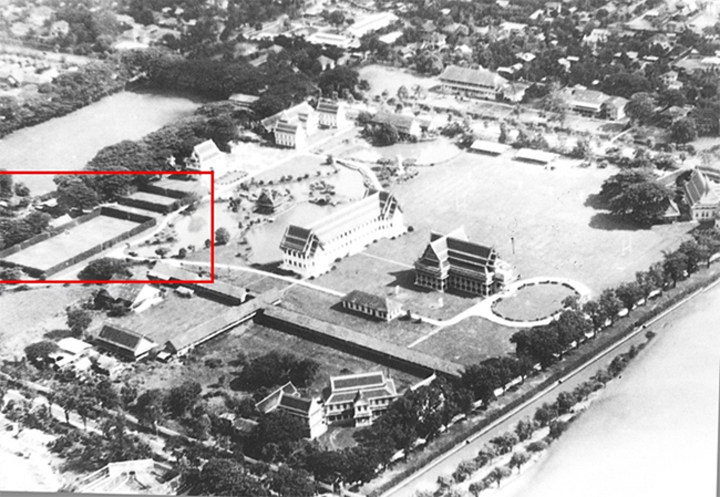 ก่อนที่จะย้ายสนามบาสเกตบอลไปสร้างใหม่เป็นสนามพื้นคอนกรีตริมคูน้ำด้านทิศเหนือด้านหลังคณะพญาไท