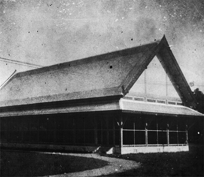 โรงยิมนาสติกนี้เป็นเรือนไม้ชั้นเดียว