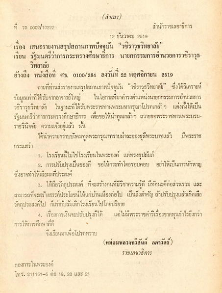 มาเสนอต่อที่ประชุมคณะกรรมการอำนวยการวชิราวุธวิทยาลัย