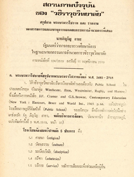 ได้นำบทวิเคราะห์สถานภาพปัจจุบันของ วชิราวุธวิทยาลัย